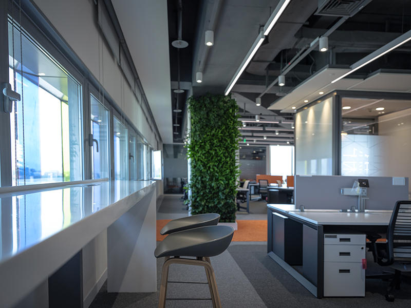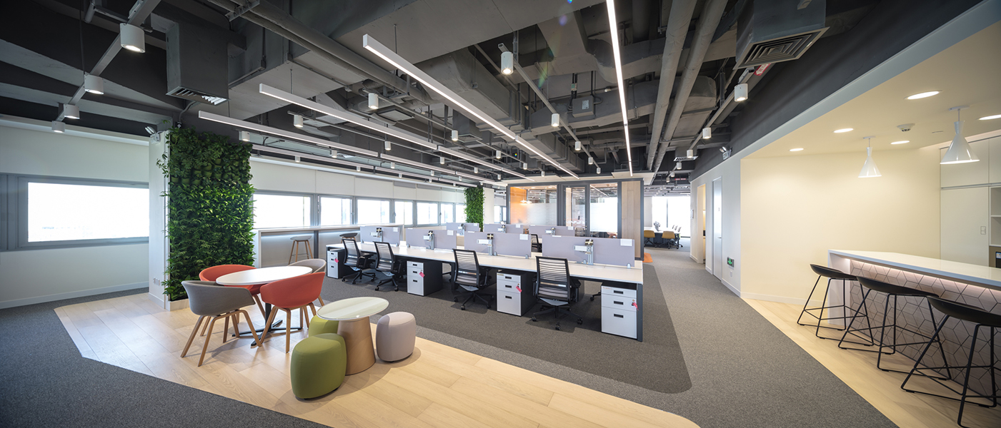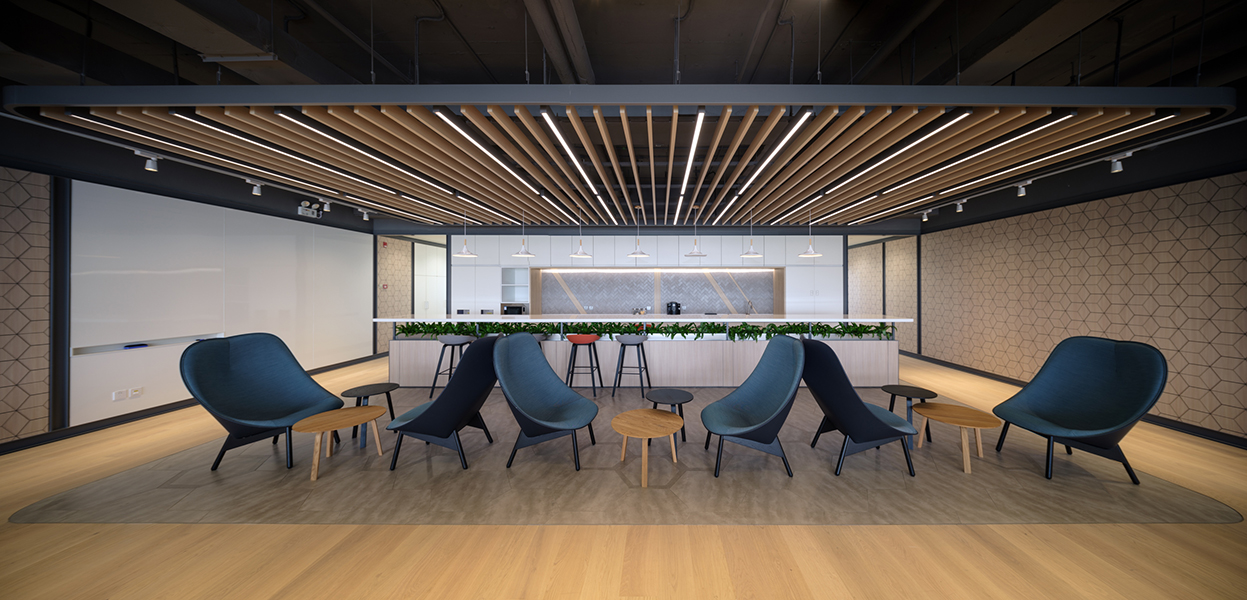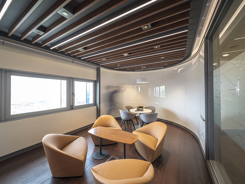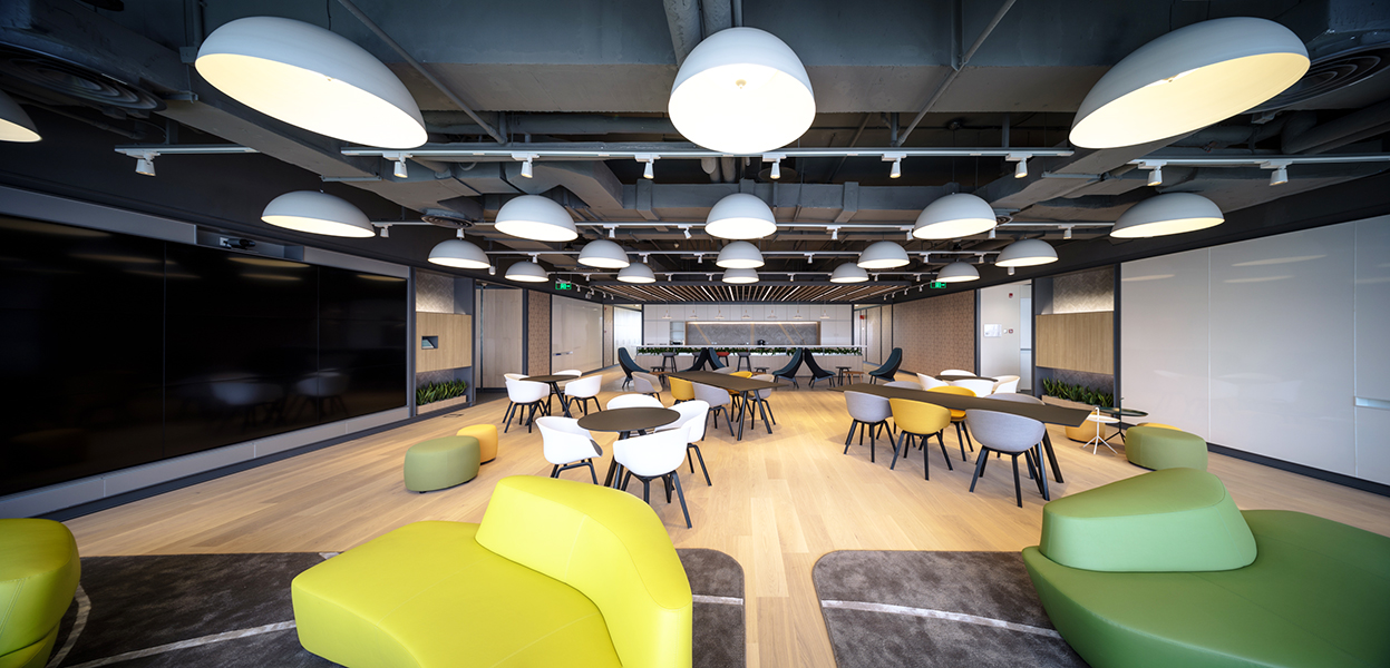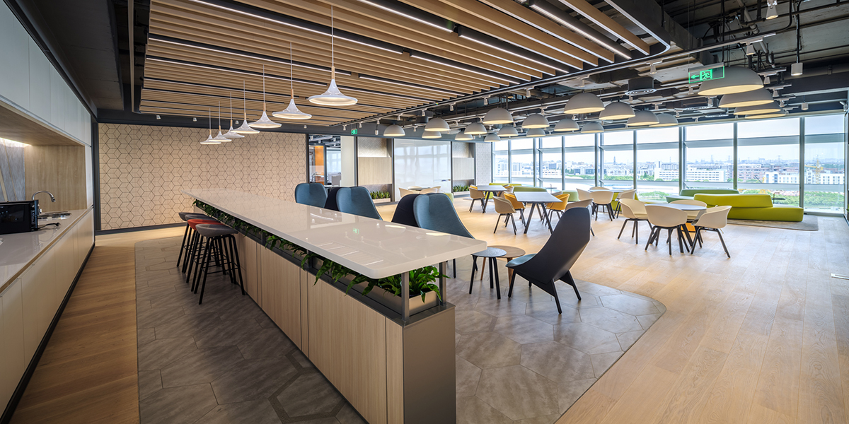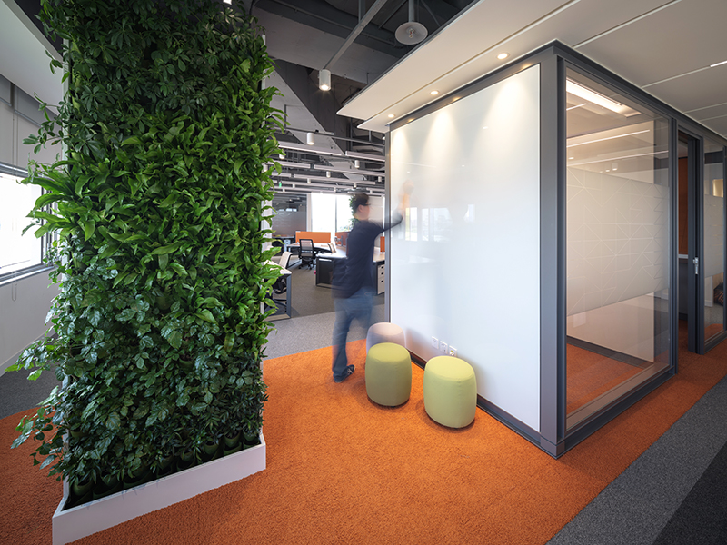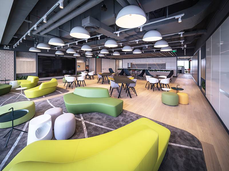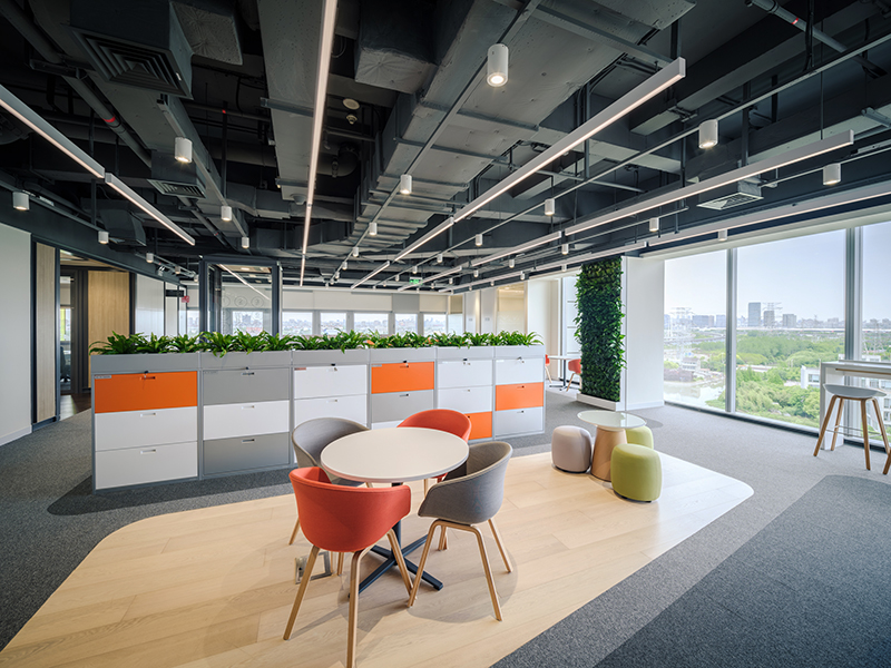 除了会议室及电话间等必要的封闭空间外,所有办公空间均为敞开式的设计,即使CEO也没有独立的办公室,实现了真正意义上“没有办公室的办公室“。这样的设置不但弱化了层级关系,并且提升了沟通效率以及人与人之间的互动性。